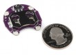 This LilyPad Coin Cell Battery Holder has a small slide switch installed on the board, in-line with the power so you can shut off your project and save batteries. This slide switch is the same as is found on the LilyPad slide switch board, so it’s not easy to accidentally turn off or on.