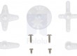 The servo has a 7″ (180 mm) lead that is terminated with a JR-style connector and includes additional servo horns and mounting hardware. The following picture shows an example of the hardware that might be included (actual hardware could vary):