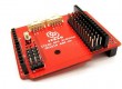 Compared to Arduino, it's hard to find the shields and electronic brick customized for Raspberry Pi. This RPI Arduino Shield Add-on has extended 32pin connector of RPI to Arduino pins, which will facilitate connections to all kinds of arduino shields. Meanwhile, two groups of electronic brick interfaces are equipped on the add-on, which are free to be connected to various electronic bricks.