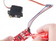 The SparkFun Servo Trigger is a small robotics board that simplifies the control of hobby RC servo motors. When an external switch or logic signal changes state, the Servo Trigger is able to tell an attached servo motor to move from position A to position B. To use the Servo Trigger, you simply connect a hobby servo and a switch, then use the on-board potentiometers to adjust the start/stop positions and the transition time. You can use a hobby servos in your projects without having to do any programming!
