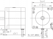 The following diagram shows the stepper motor dimensions in mm. The output shaft has a 0.25″ (6.35 mm) diameter. Though not shown in the diagram, the output is a D-shaft with a section that is flattened by 0.5 mm. This shaft works with our 1/4″ universal mounting hub and 1/4″ scooter wheel adapter.