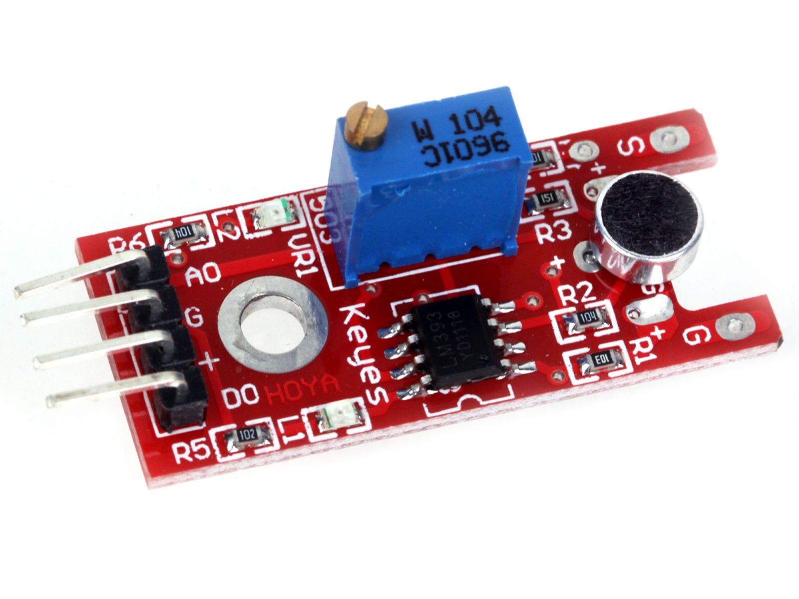 Sensor de sonido con micrófono electret.
