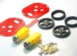 Two plastic wheels are press-fit onto DC motor gear box output gear shaft, and easy to make a nice drive solution for small robots. The wheels have silicone tires and measure 60mm (2.36″) in diameter.