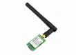 Tranceiver que opera en el rango 2.4GHz, posee interfaz SPI para la comunicación con microcontroladores. Incluye antena.