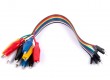 Pack de 10 cables de 20 cm para conexión, de tipo Dupont macho y cocodrilo. Apropiado para experimentación en protoboard.