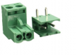 Bornera enchufable de 2 terminales para montar en circuito impreso, con ángulo de 90 grados y paso 5.08mm (0.2").