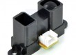 The GP2Y0A02 uses a 3-pin JST connector (not included) as shown in the top picture on the right. It is also simple to solder three wires to the sensor where the connector pins are mounted. When looking at the back, the three connections from left to right are power, ground, and the output signal.