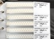 Always have the right SMT components at your hand with this awesome 0603 Resistor and Capacitor book set! This book has nice translucent pages filled with cut tape 0603 SMT components, sorted, labeled and ready to go. This book has 63 5% resistor values, 3025 parts and 17 capacitor values, 700 parts. The nice thing is that you get a good distribution of the resistors, with more 1K and 10KΩ and fewer of the really high values.