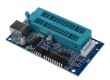 Programador de microcontroladores PIC de Microchip. Se alimenta desde el mismo puerto USB. Integra un zócalo ZIF de 40 pines. Incluye cable USB, cable ICSP y soportes para conectar a chasis.