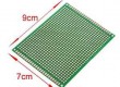 Placa experimental de circuito impreso perforada doble faz con orificios metalizados, material FR-4 (resina epoxi reforzada con fibra de vidrio) de 9cm x 7cm, para proyectos o prototipos.
