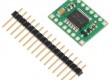 In a typical application, power connections are made on one side of the board and control connections are made on the other. All of the control inputs are internally pulled low. Each of the two motor channels has two direction control pins and a speed control pin that accepts a PWM input with a frequency of up to 100 kHz. TheSTBY pin must be driven high to take the driver out of standby mode.