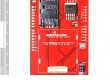 The main components of the Cellular Shield are a 60-pin SM5100B connector, a SIM card socket, and an SPX29302 voltage regulator configured to regulate the Arduino’s raw voltage to 3.8V. The board’s red LED indicates power. The Arduino’s reset button is also brought out on the shield.