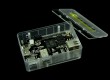 Gabinete plástico semitransparente para Cubieboard. Permite acceso al puerto SATA y bus de datos.