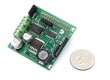 The RaspiRobot Board v2 is a motor interface board for the Raspberry Pi that includes a switched-mode power supply that will supply power to your Raspberry Pi from a variety of battery packs.