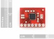 La comunicación con el ITG-3200 se logra a través de una interfaz de dos hilos (I2C). El sensor también cuenta con salida de interrupción y una entrada de reloj opcional. Un puente en la parte superior de la plaqueta permite seleccionar fácilmente la dirección I2C, llevando el pin AD0 a VCC o tierra; la placa por default trae ese puente a VCC. Si no se va a utilizar el pin CLKIN, puede cortarse el puente en la parte inferior de la placa para llevarlo a GND.